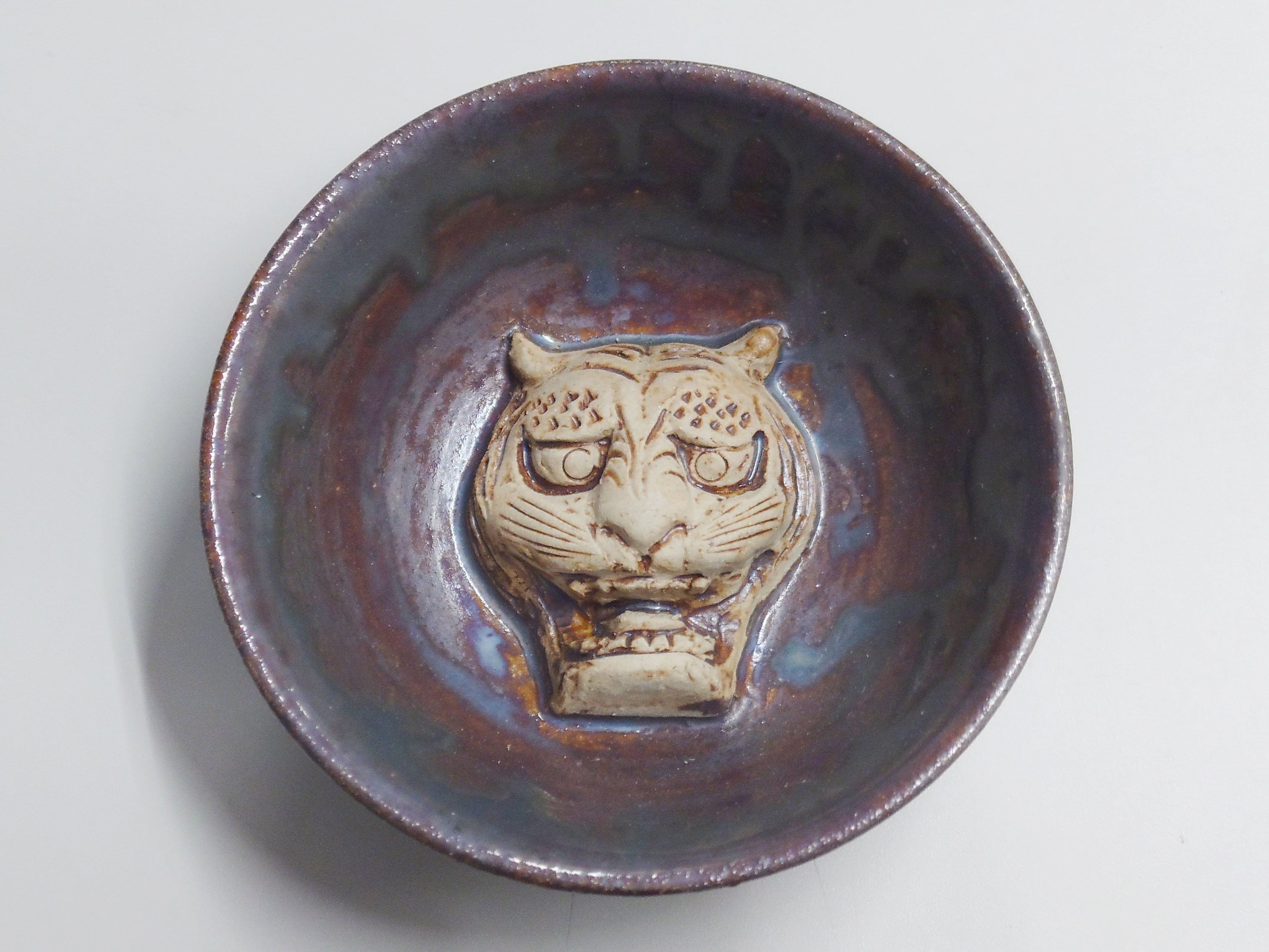 神楽の虎の表情に釉薬が入り浮き出て見えます。釉薬タイプはそれぞれ釉薬の纏い具合が違うので1 個ずつ販売します。