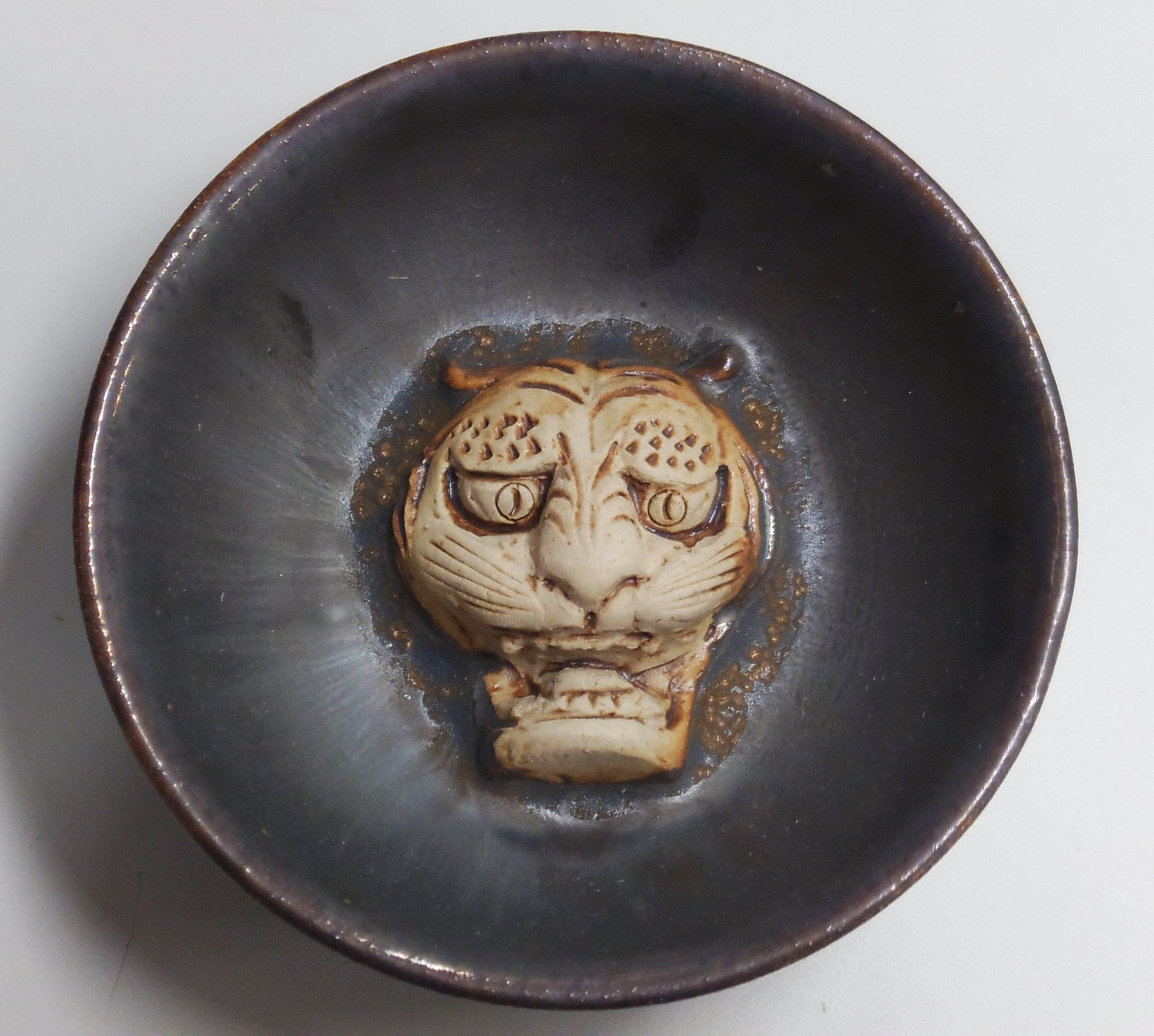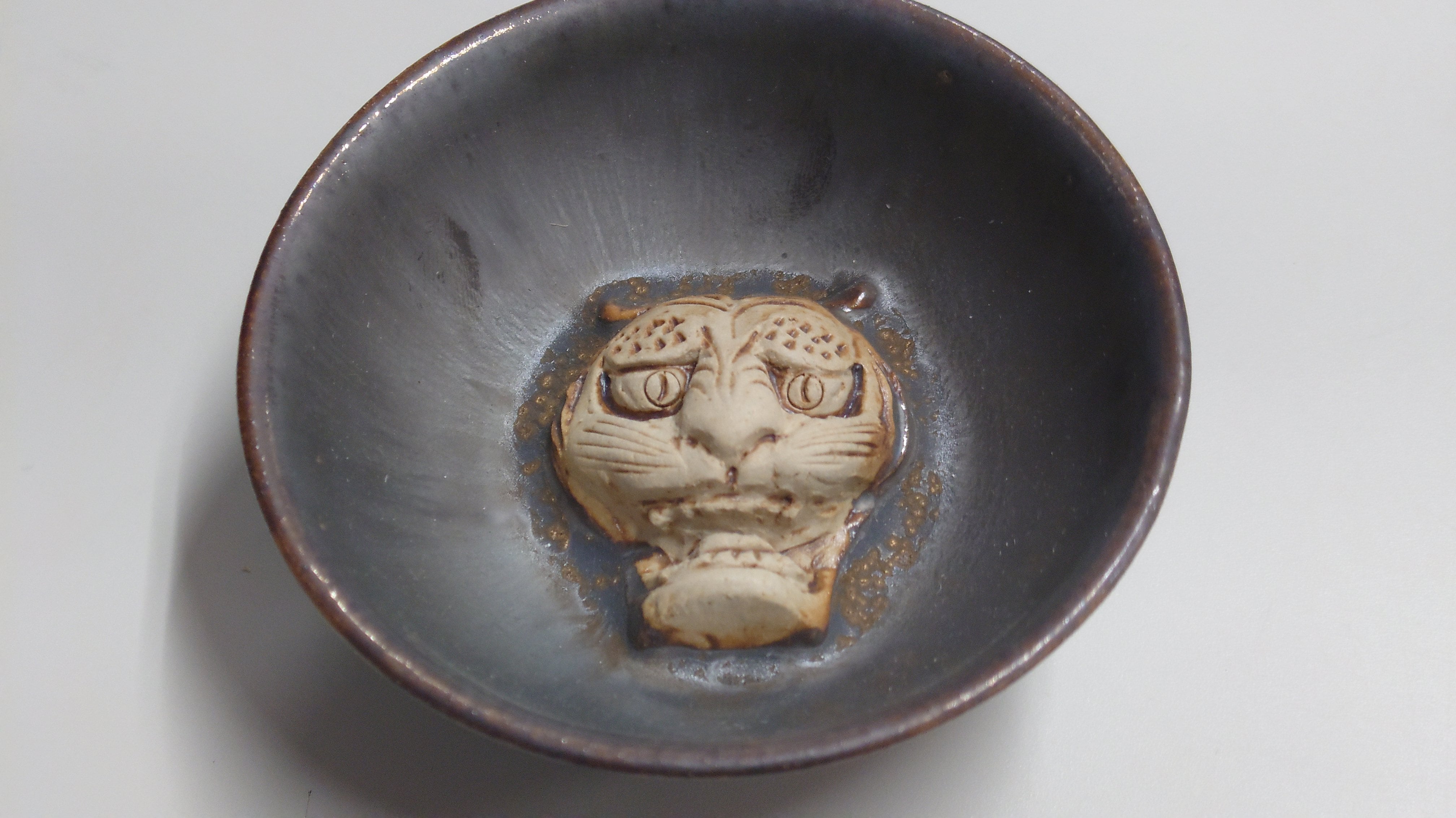 神楽の虎の表情に釉薬が入り浮き出て見えます。釉薬タイプはそれぞれ釉薬の纏い具合が違うので1 個ずつ販売します。