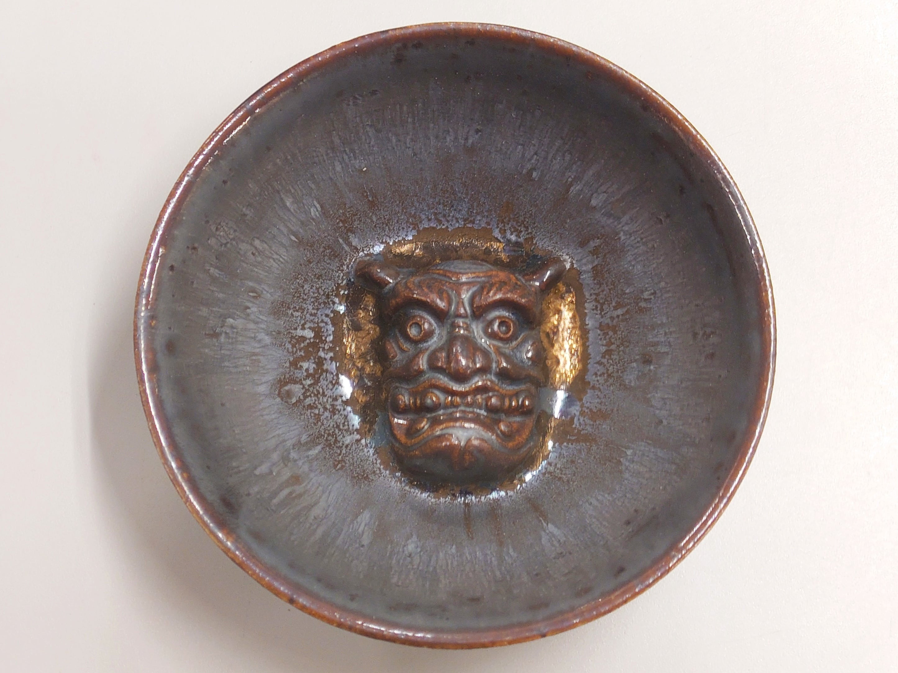 酒吞童子の表情に釉薬が入り浮き出て見えます。釉薬タイプはそれぞれ釉薬の纏い具合が違うので1 個ずつ販売します。